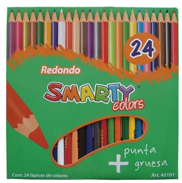 Lápices de Colores Caja con 24 Piezas Largos Redondos Smarty